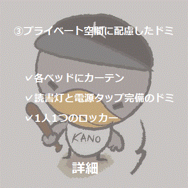 ドミトリーは男女別れているから女性も安心して泊まりに来てね。